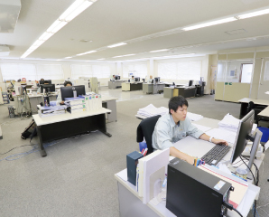 工作図を作製するCAD室。本社、梁工場とをオンラインで繋ぎ、適切な作業を行います。